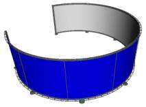 弧长:8000.0 mm 幕高:2400.0 mm 半径:3819.7 mm 弦长:6615.9 mm 角度:120° 投影面积:19.2 m2 最大高度:2883.0 mm 最大宽度:6919.5 mm 重量:~79公斤 高强度铝合金框架,表面喷塑处理, 组装容易,圆周精度±5 mm |