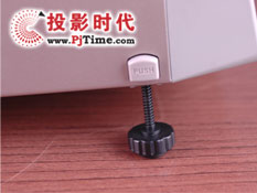 这款投影机在支角架上的设计跟许多投影机都不一样,以往许多投影机在支架上都是前端一个活动支架、后端两个固定或旋转的支架,而三菱MD-150S娱乐型投影机采用的却是前端两个活动支架、后端的中间部位只有一个固定的支点。这样设计在某些情况下好是很管用的,比如在调节画面时就可以直接调节投影机两侧的按扭而不用将手伸到投影机的前端去调节而担心挡住投影画面了。