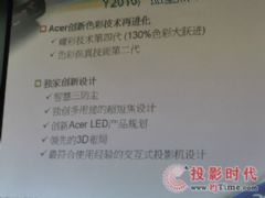2010年10月19日,Acer投影技术说明会于东直门南大街居然大厦7层际恒集团的孔仲尼会议室召开。本次说明会,宏碁产品经理林元元以及宏碁技术副理苏镇港先生特别从台湾来到内地和内地的广大媒体朋友们一起就宏碁投影机的一些情况进行了交流探讨。…详情>>