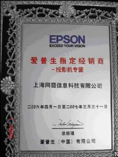 2006年3月,爱普生在成都希尔顿酒店举办全国经销商大会,网庭公司喜获“最佳销售奖”,并取得两项代理证书,分别为“爱普生指定经销商--投影机专营”和“爱普生指定经销商--家用投影机专营”。…详情>>
